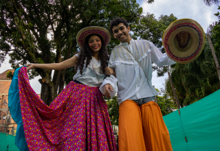 La tarde no prometía un clima complaciente. De hecho, la lluvia, tímida primero y luego más decidida, quiso desbaratar el entusiasmo. Pero quienes danzan saben que ni el agua, ni el viento logran apagar una pasión que brota desde los pies y se extiende como corriente viva. A las cuatro en punto, como estaba previsto, comenzaron a llegar uno a uno al icónico puente de Calicante, ese testigo silente de tantas memorias, a un costado de la antigua Imusa, los rostros sonrientes, los trajes cargados de color, la energía vibrando en el aire húmedo.