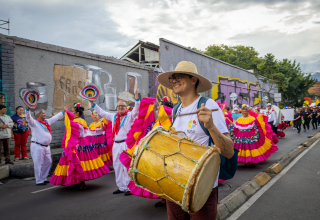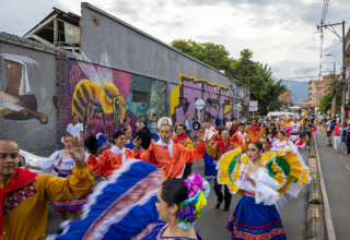 La corporación Folclórica Tierra Antioqueña, Academia Artística Tierra Antioqueña, el Grupo Élite, la Fundación Nedisco, La Corporación Escaladores Hacia el Futuro, Warriors Academy, Grupo Junior Tierra Antioqueña, Danse Voler, Ancestro Colombiano, Palenqueros de Curazao Grupo de zanqueros y los grupos de proyección de la Casa de la Cultura, todos convergieron en un mosaico viviente de tradiciones y sueños. A su alrededor, madres, padres, hermanos y amigos, convertidos también en artistas de la celebración, acompañaban el desfile que poco a poco se tomaba las calles.